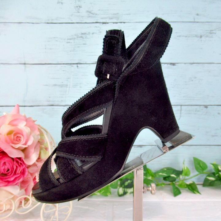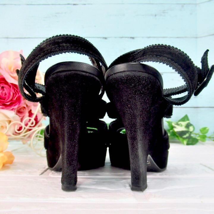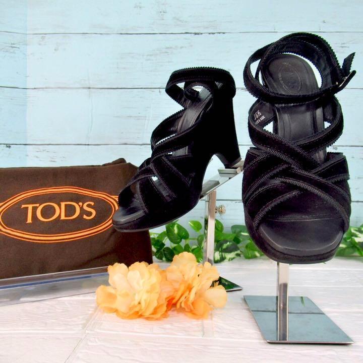 トッズ TOD'S アンクルストラップスエードサンダル 23.5 黒 イタリア製