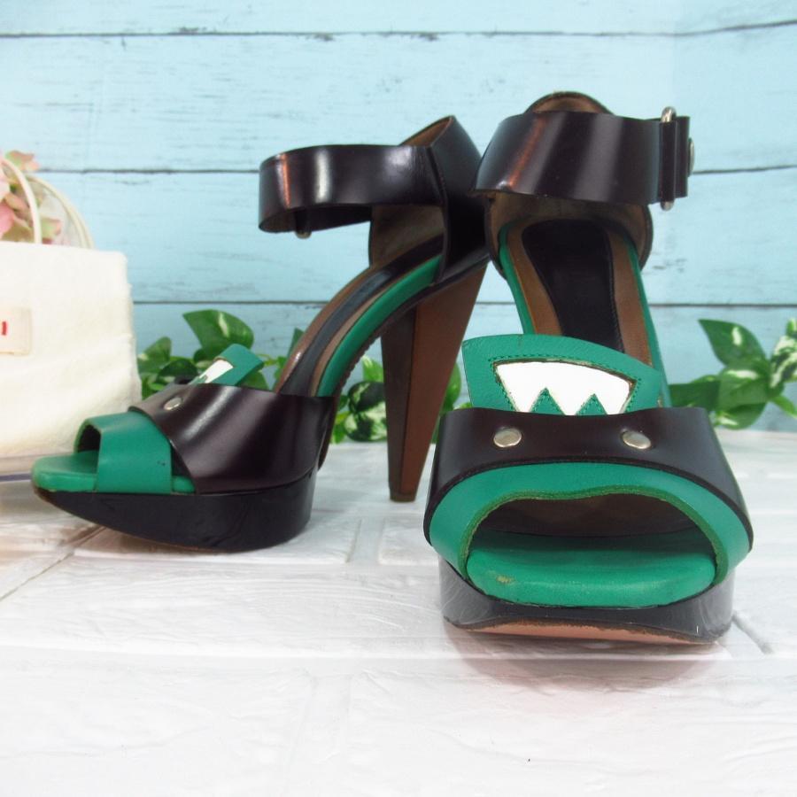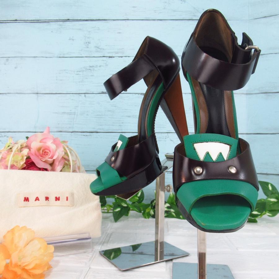 MARNI マルニ アンクルストラップサンダル 22.5 顔デザイン 緑 黒