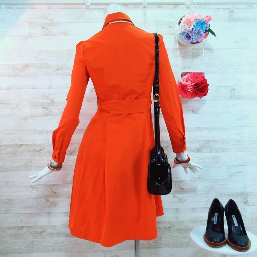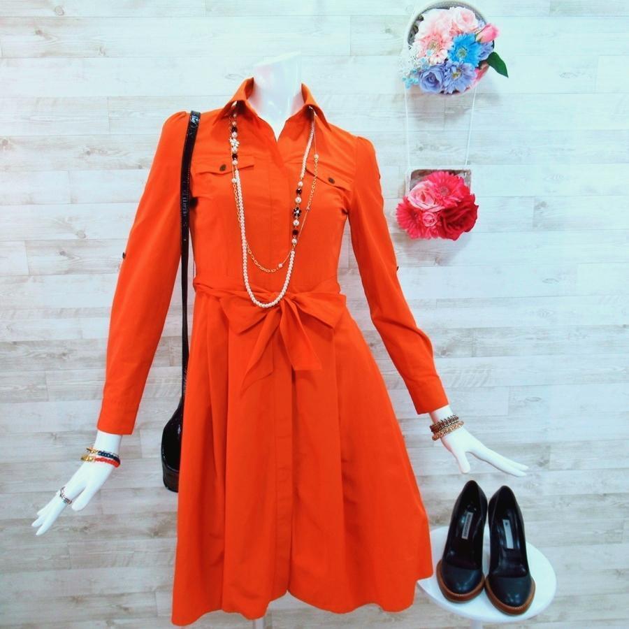 ANAYI 長袖ベルテッドシャツワンピース S オレンジ フレアスカート