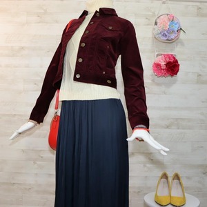 ジーンズにも合わせても可愛いですし、トップスを白系の薄手のニットにして、このジャケットをタイト目に着て、ロングスカートと合わせても◎