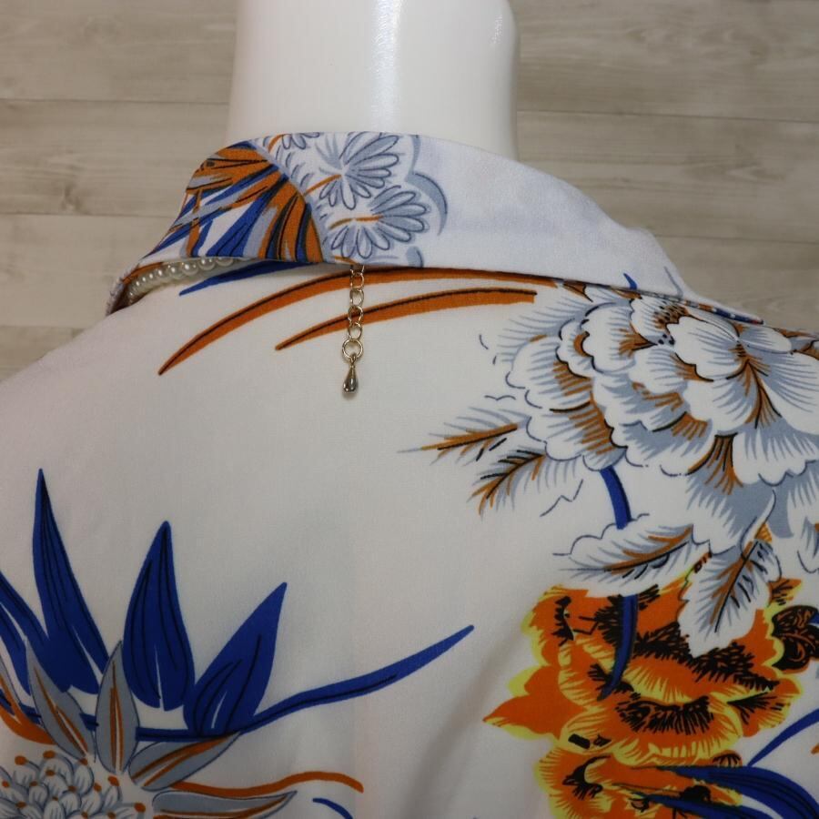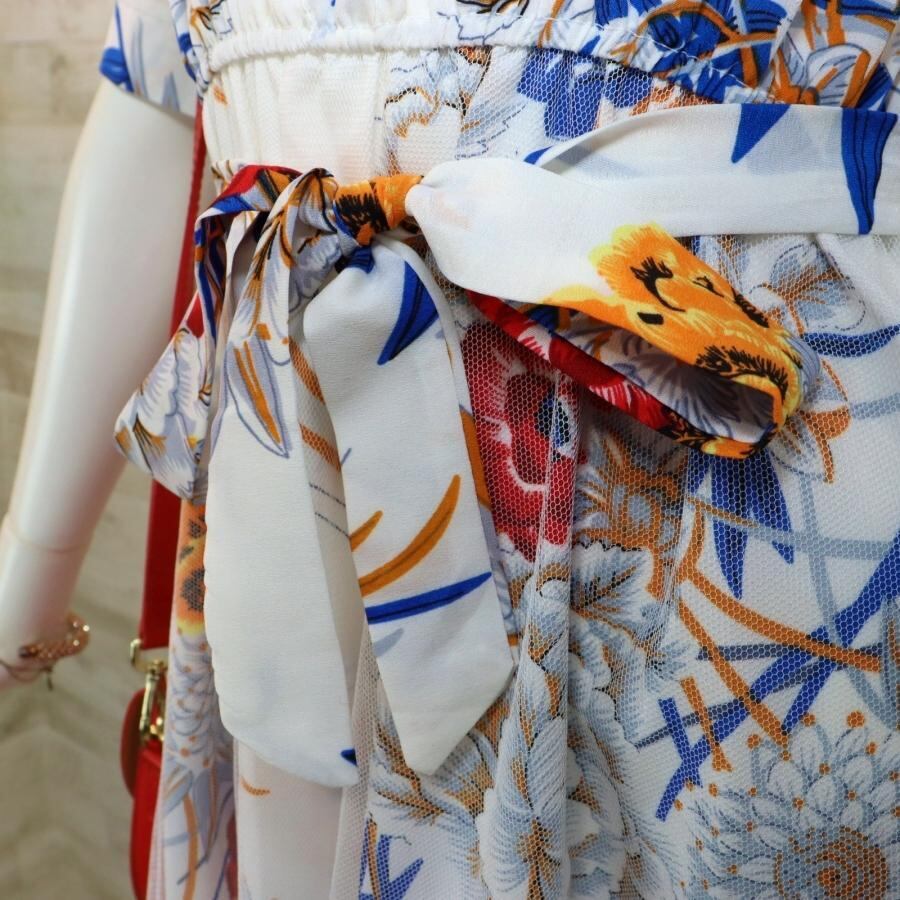 爽やかな白地に全体に大ぶりの花柄がプリントされていて、清楚感もありながら、しっかり主張してくれるワンピです。
