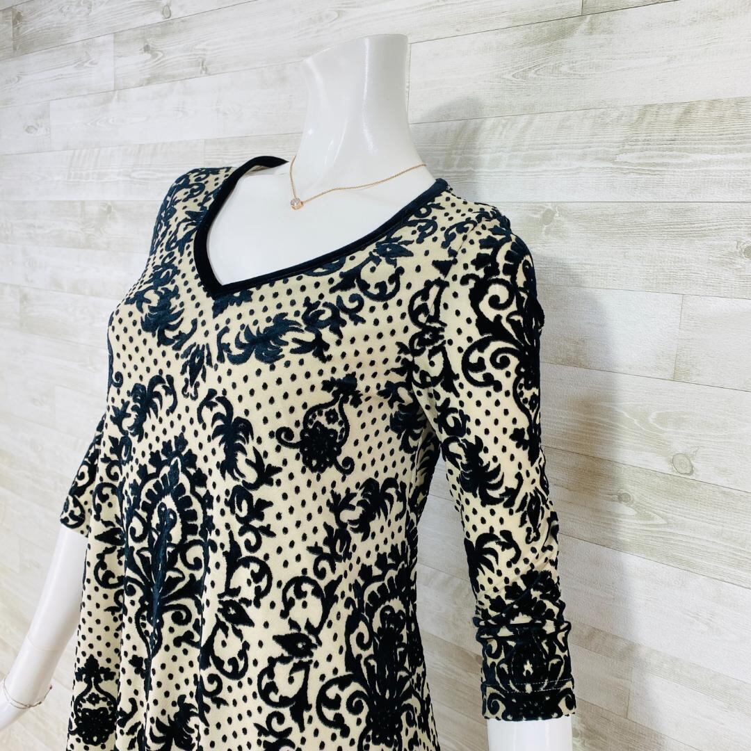Diagram 七分丈ジャガードワンピース S ドット 唐草模様 ほぼ未使用