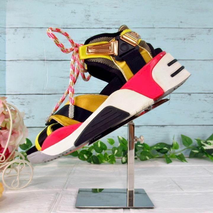 色はブラック&ホワイト、イエロー、ピンクなどのマルチカラーで、サイズはEU39なので、日本サイズの25.0〜25.5cm相当です。
