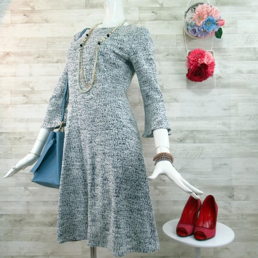 ANAYI ツイードフレアワンピース M 白×ネイビー ひざ丈 ほぼ未使用