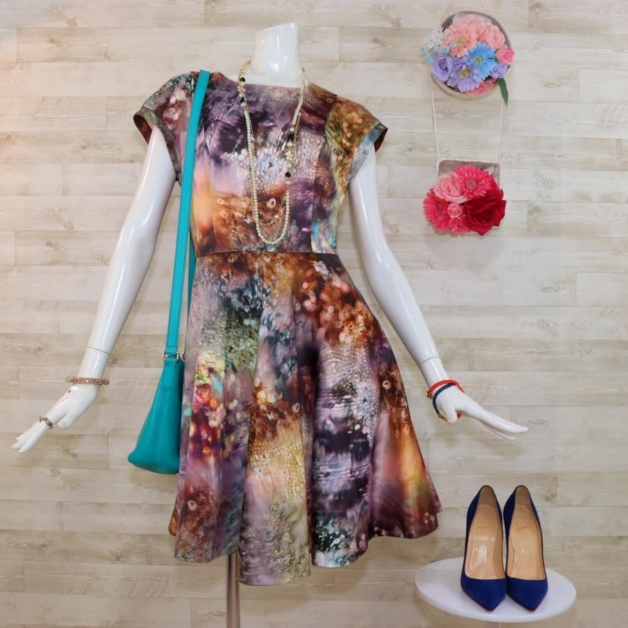 テッドベイカー マルチカラープリントワンピース ドレス S ひざ丈 ほぼ未使用