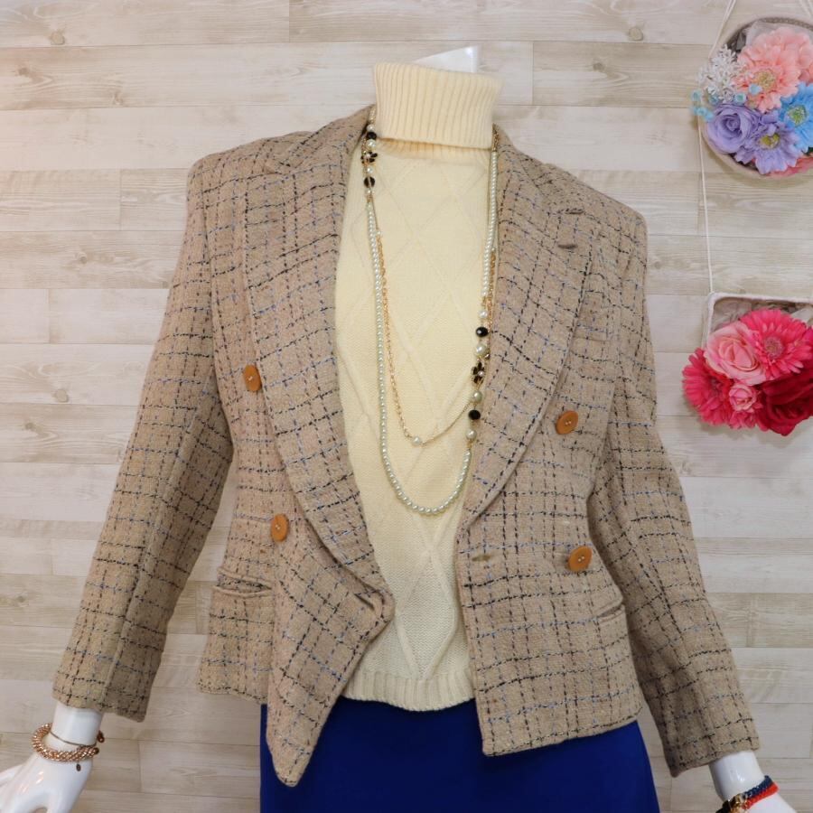 ジョルジオアルマーニ ツイードダブルジャケット ベージュ シルク ほぼ未使用