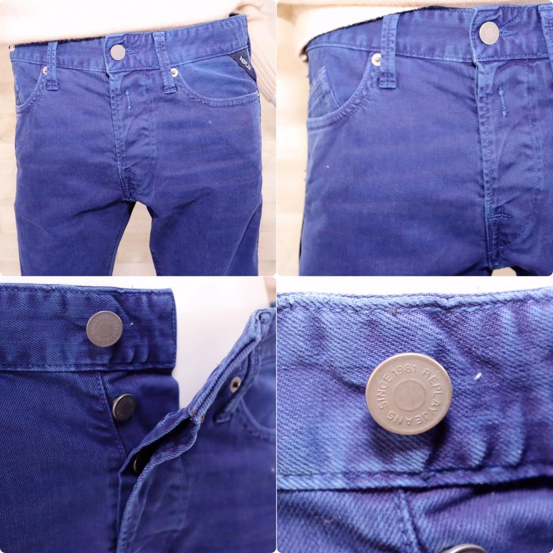 新品未使用 REPLAY ストレートデニムパンツ 青 L 28 ジーンズ 伸縮