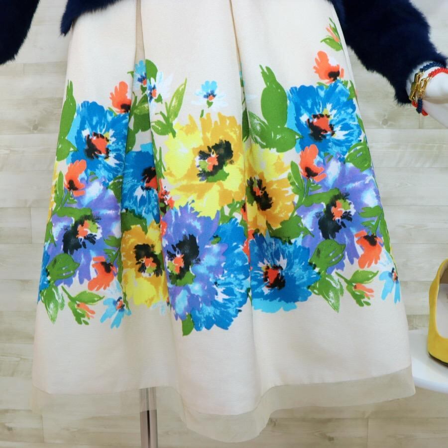 M’S GRACY ひざ丈花柄フレアスカート M ベージュ ほぼ未使用