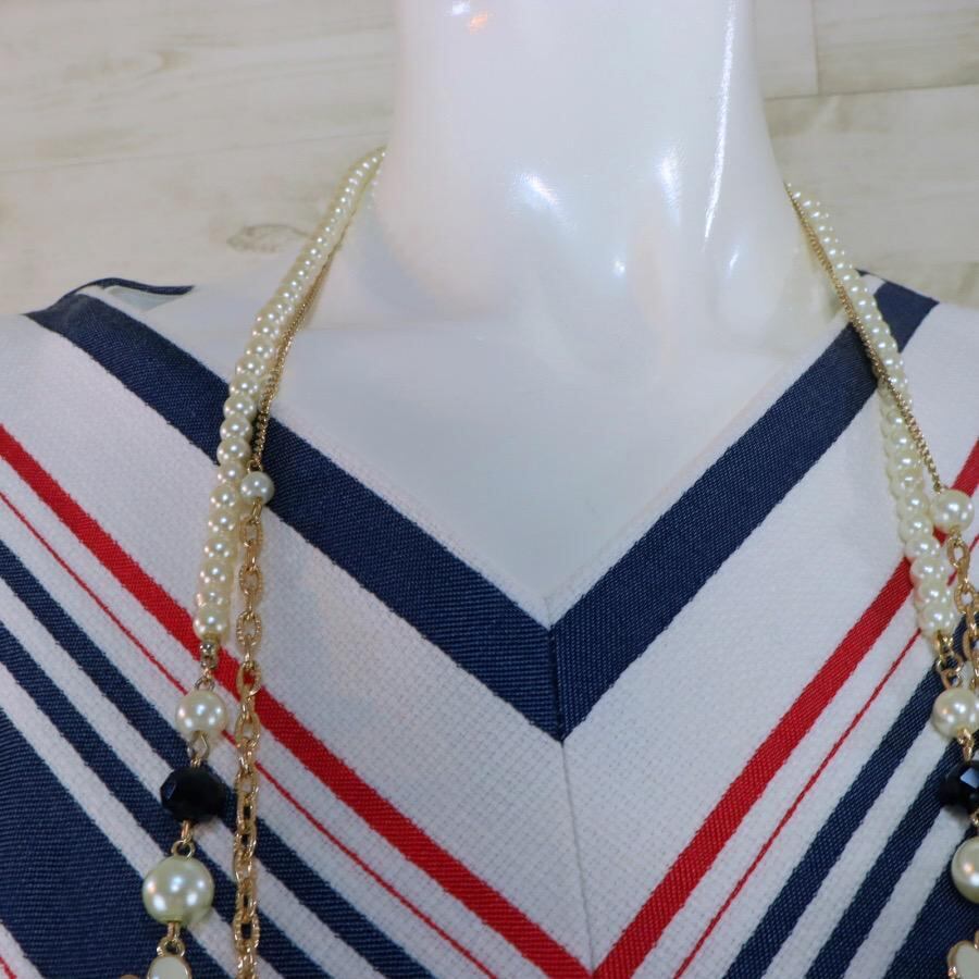 色はホワイト×ブルー×レッドのボーダー柄で、サイズは38なので、レディースのM相当です。
