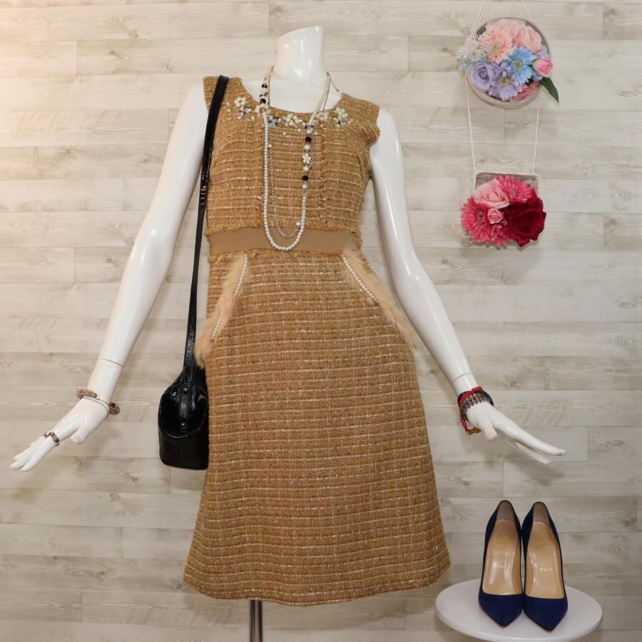 チェスティ ツイードワンピース S ベージュ ファー切替 ほぼ未使用
