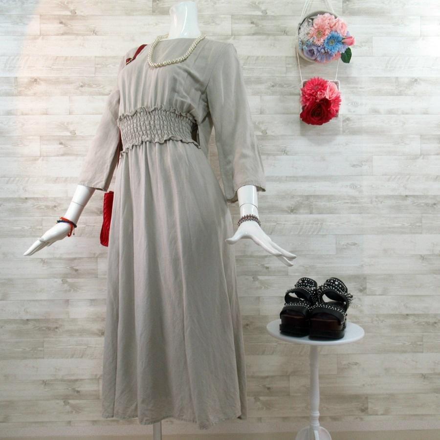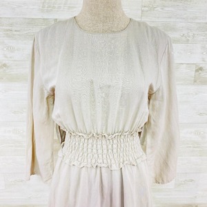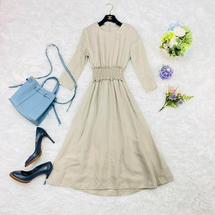 ミラオーウェン マキシ丈フレアワンピース S ベージュ リネン素材
