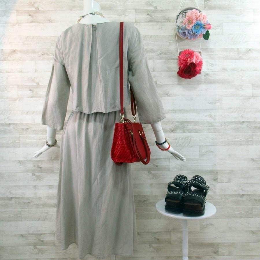 ミラオーウェンらしい流行のシルエットです。上半身は被さるような仕様になっているため、体型カバーにもピッタリ。