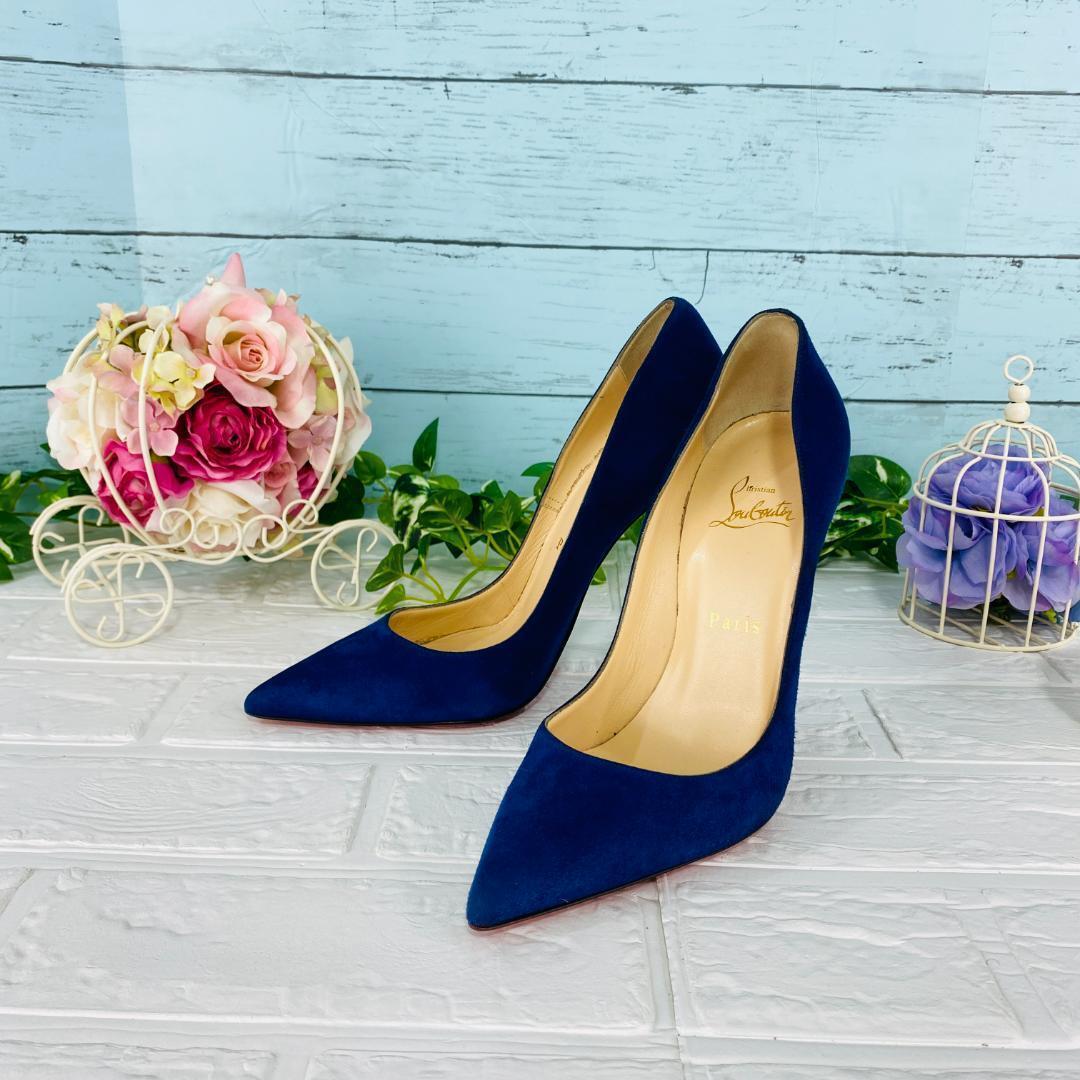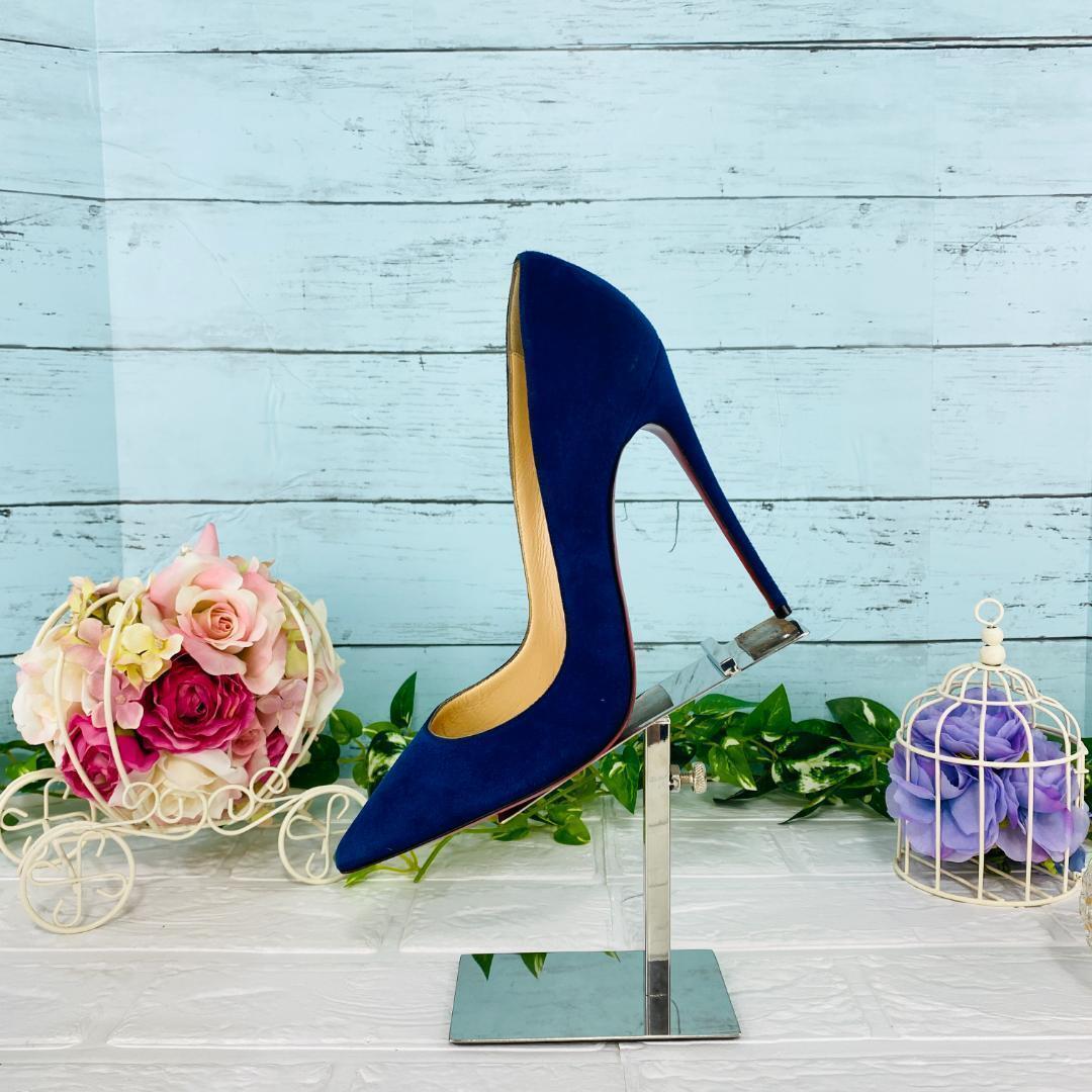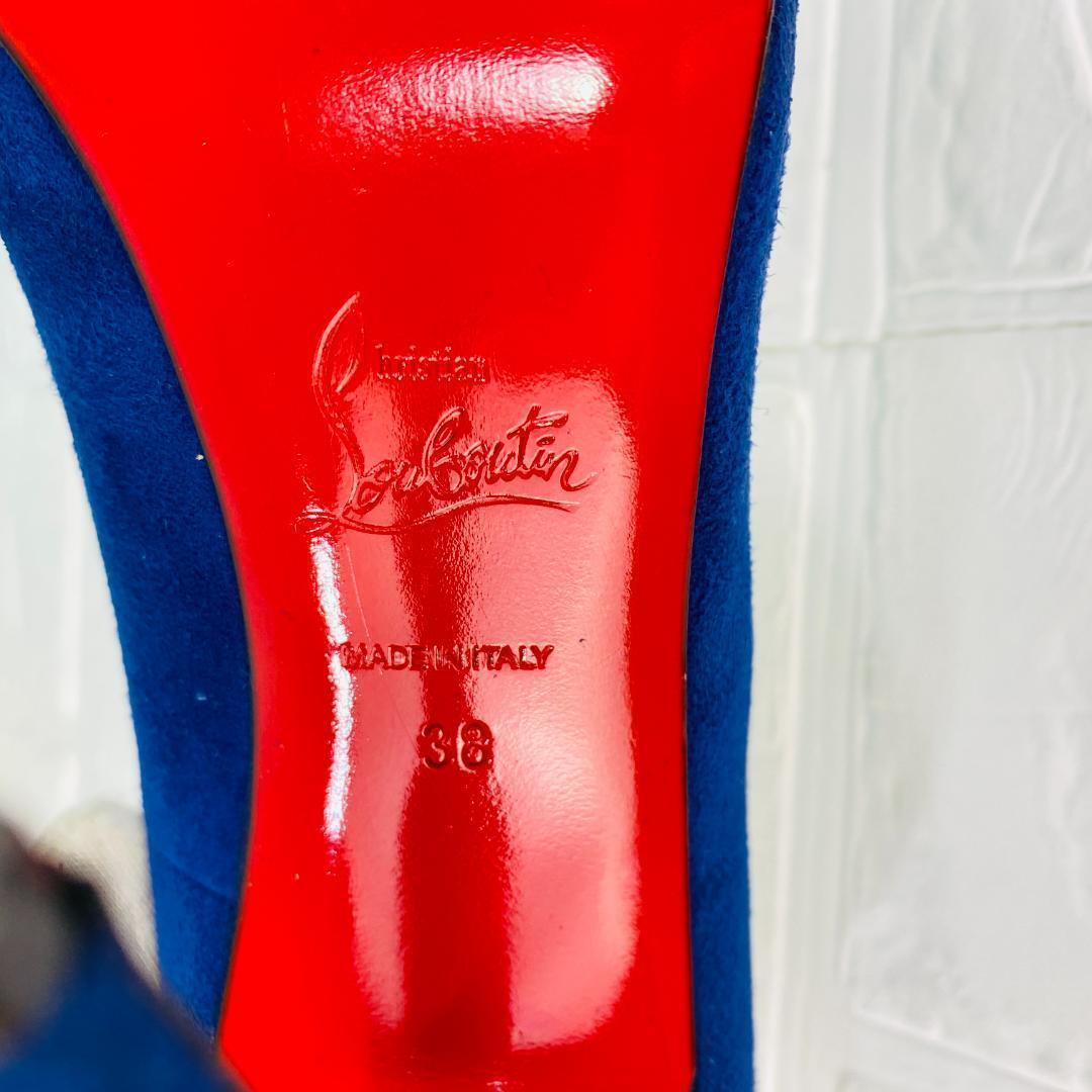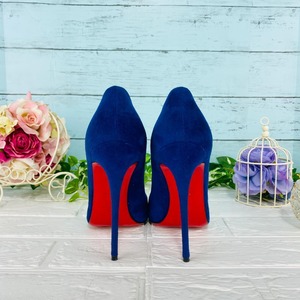 クリスチャンルブタン ソーケイト スウェードピンヒールパンプス 青×赤 38