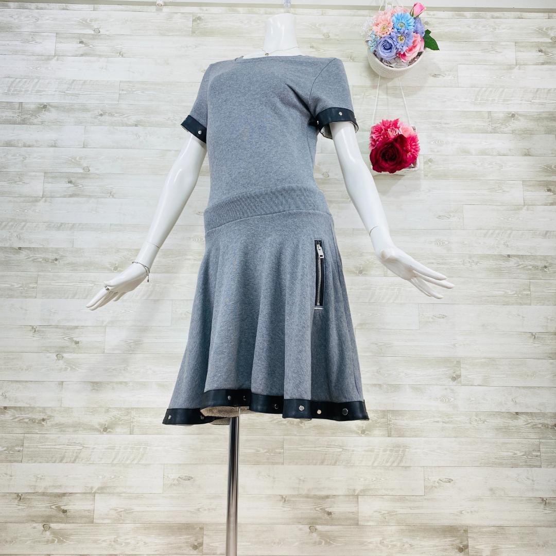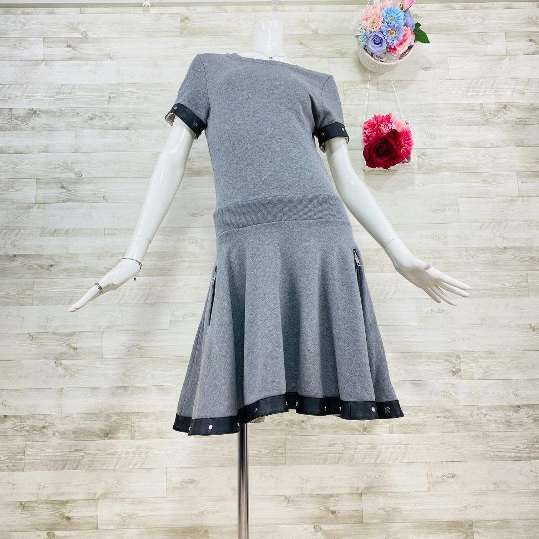 ディーゼル 異素材ドッキングワンピース M スタッズ レザー グレー×黒