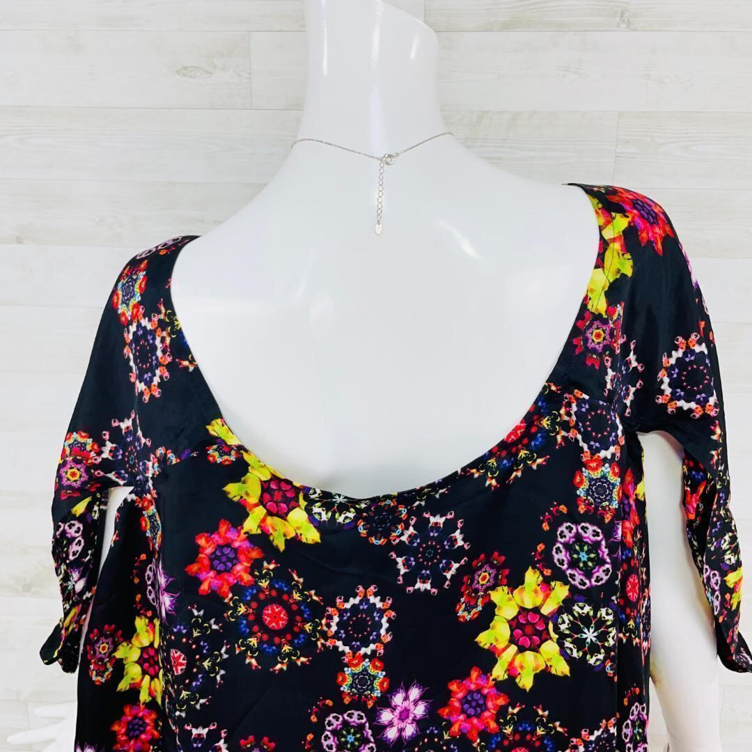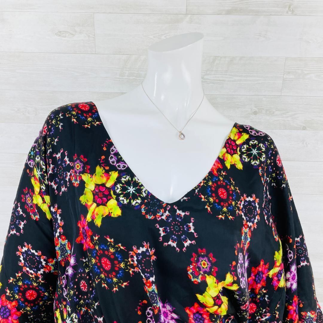 ほぼ未使用 リミフゥ ハンギングスリーブ アシメ変形ワンピース 黒 S 万華鏡柄