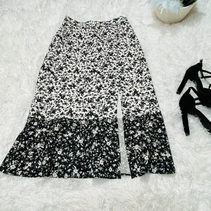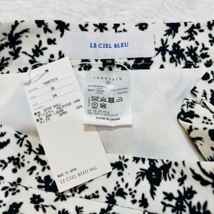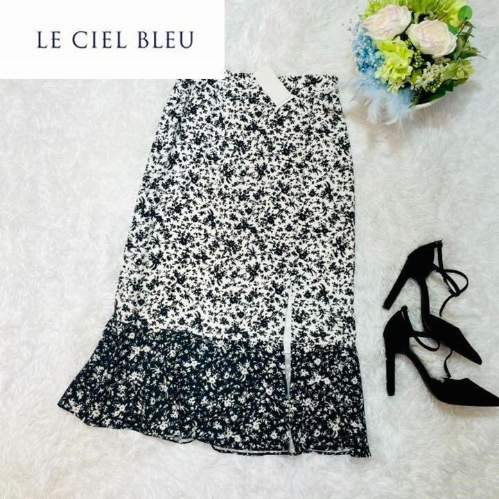 【未使用タグ付】LECIELBLEU 花柄フレアミモレ丈スカート M ホワイト
