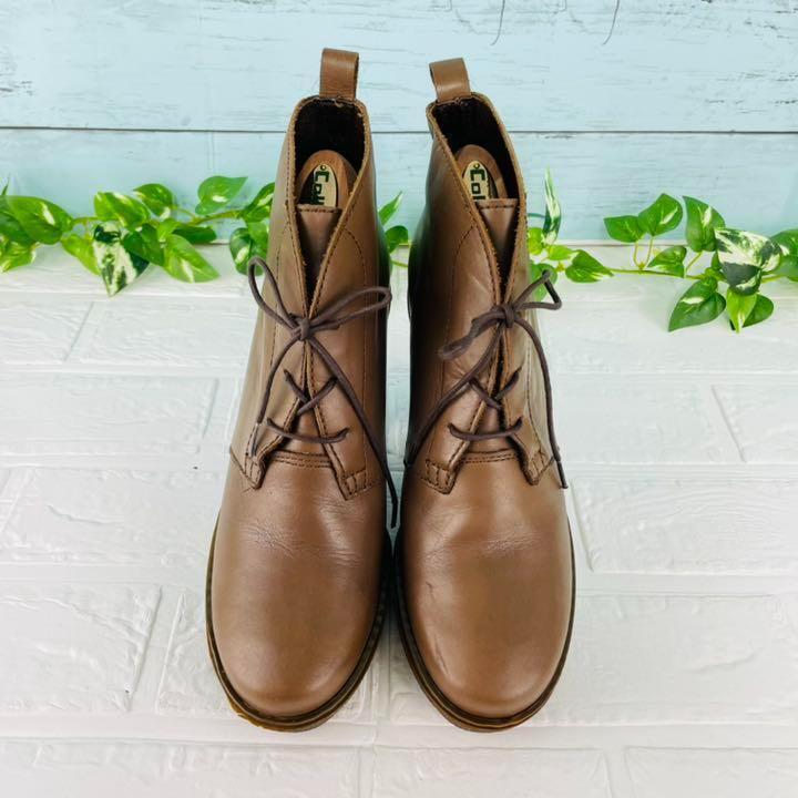 mulinsen 本革ブーツ 24.0cm ブラウン 太ヒール スタイルアップ