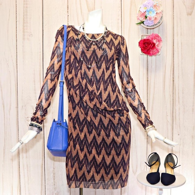 ツイードとシフォン素材の切替になっているため、ワンピース1枚でも可愛いので、首元にパールなどのネックレスを添えていただくだけで、華やかになります。