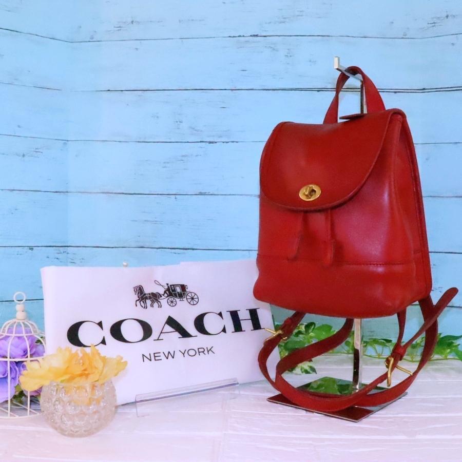 OLD COACH バックパック ヴィンテージ 赤 ターンロック ほぼ未使用