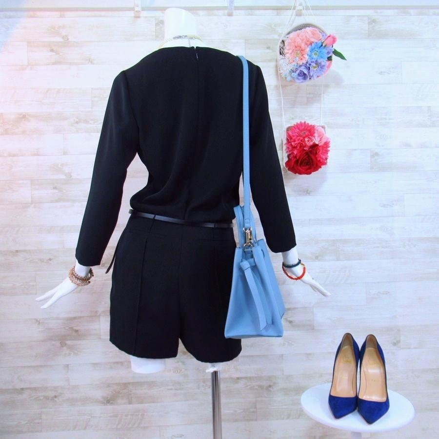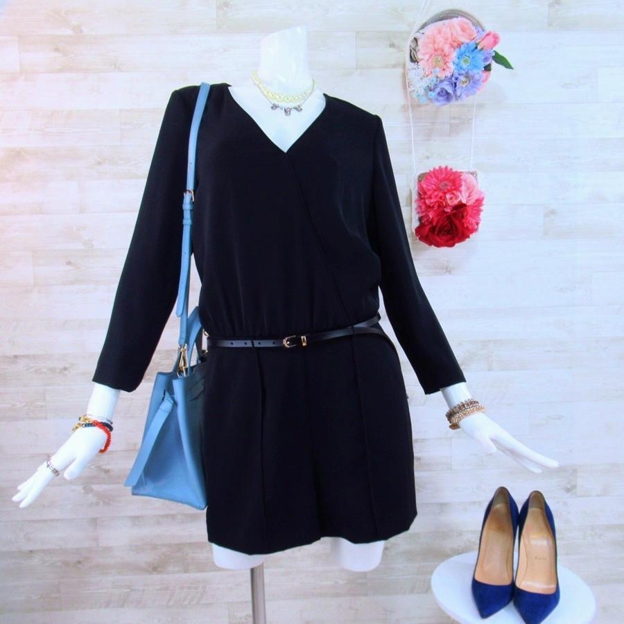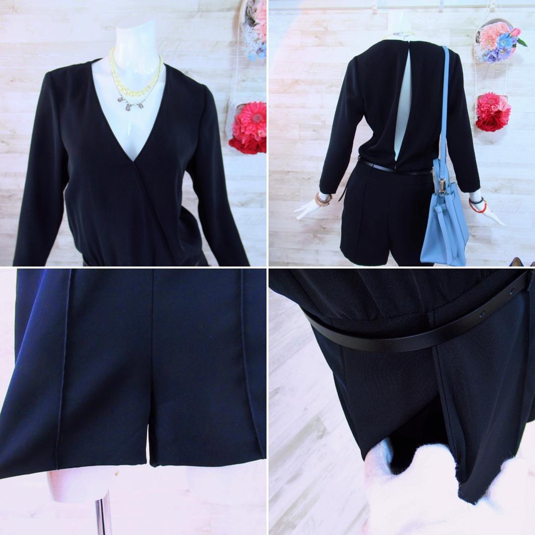 色はブラックで、サイズは1なので、レディースのM相当です。黒無地の長袖、ショートパンツのオールインワンなので一枚で大人カッコいいスタイリングが完成します。