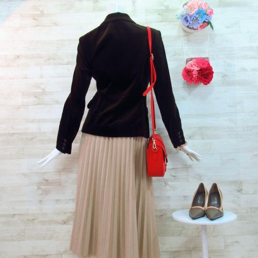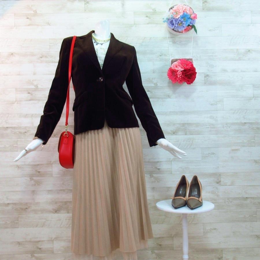 落ちついた茶色なので、クリーム色や白のタートルニットやVネックニットにフレアのスカートと合わせると上品で女性らしい秋コーデができます。