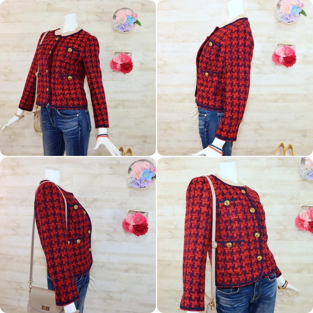 ほぼ未使用グリーンレーベルリラクシング ツイードノーカラージャケット M 赤×紺