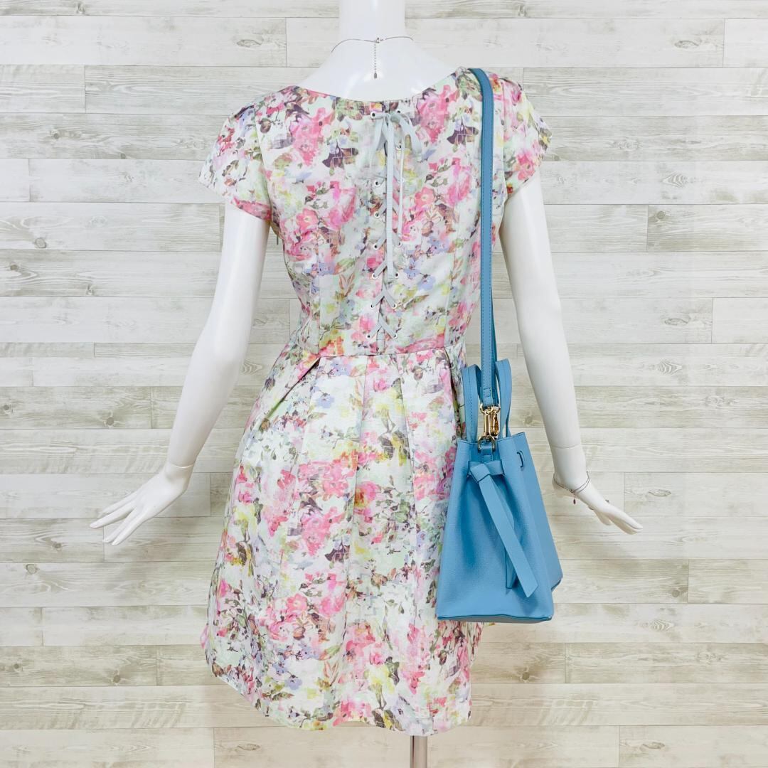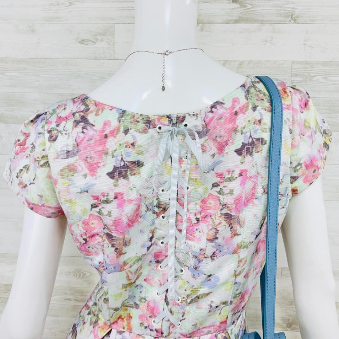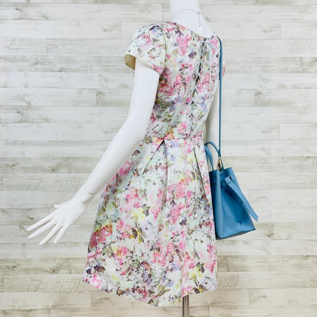 アプワイザーリッシェ 半袖花柄フレアワンピース バックレースアップ M 白