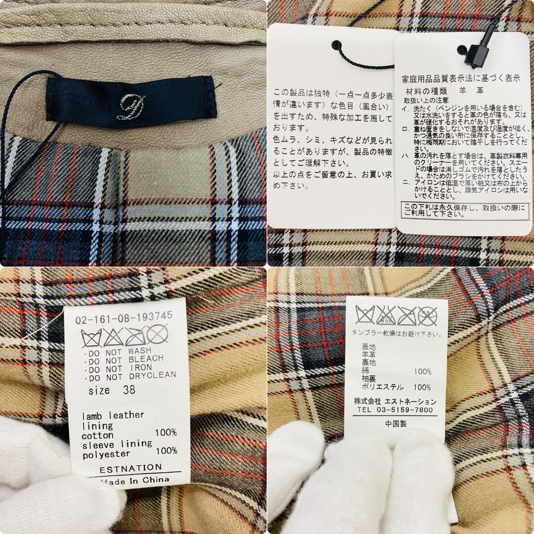 ESTNATION ノーカラーレザージャケット M 羊革 キャメル ライダース