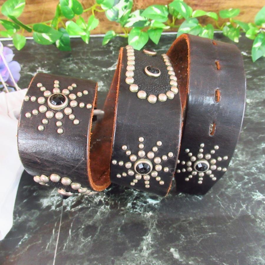HTC ピーナッツスタッズベルト こげ茶 サイズ36 本革×エイ革 ほぼ未使用
