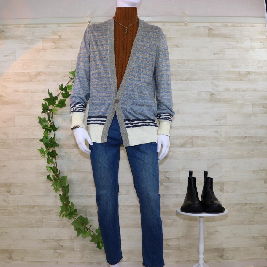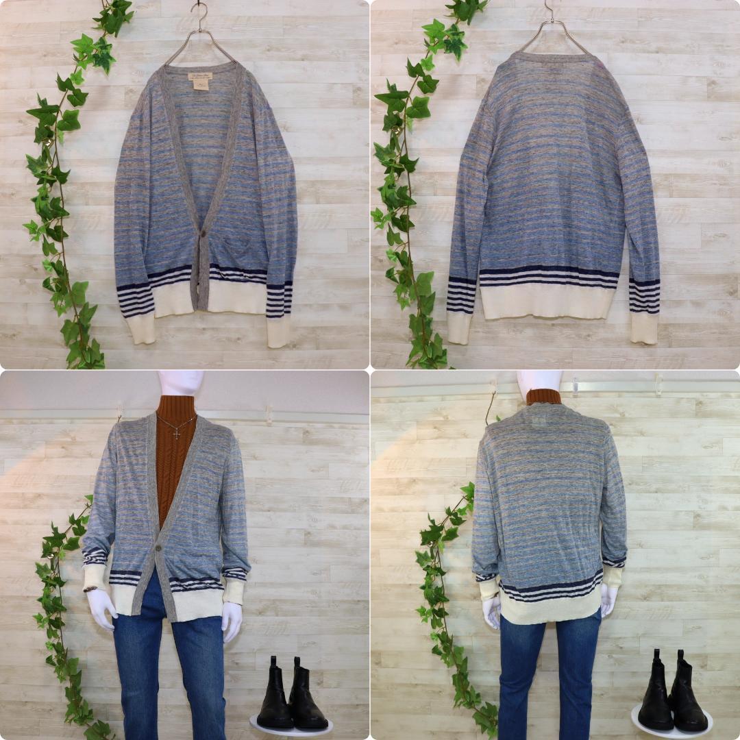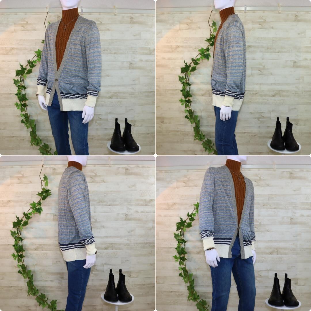 REMI RELIEF メンズカーディガンL グレー 白 ボーダー柄 ほぼ未使用