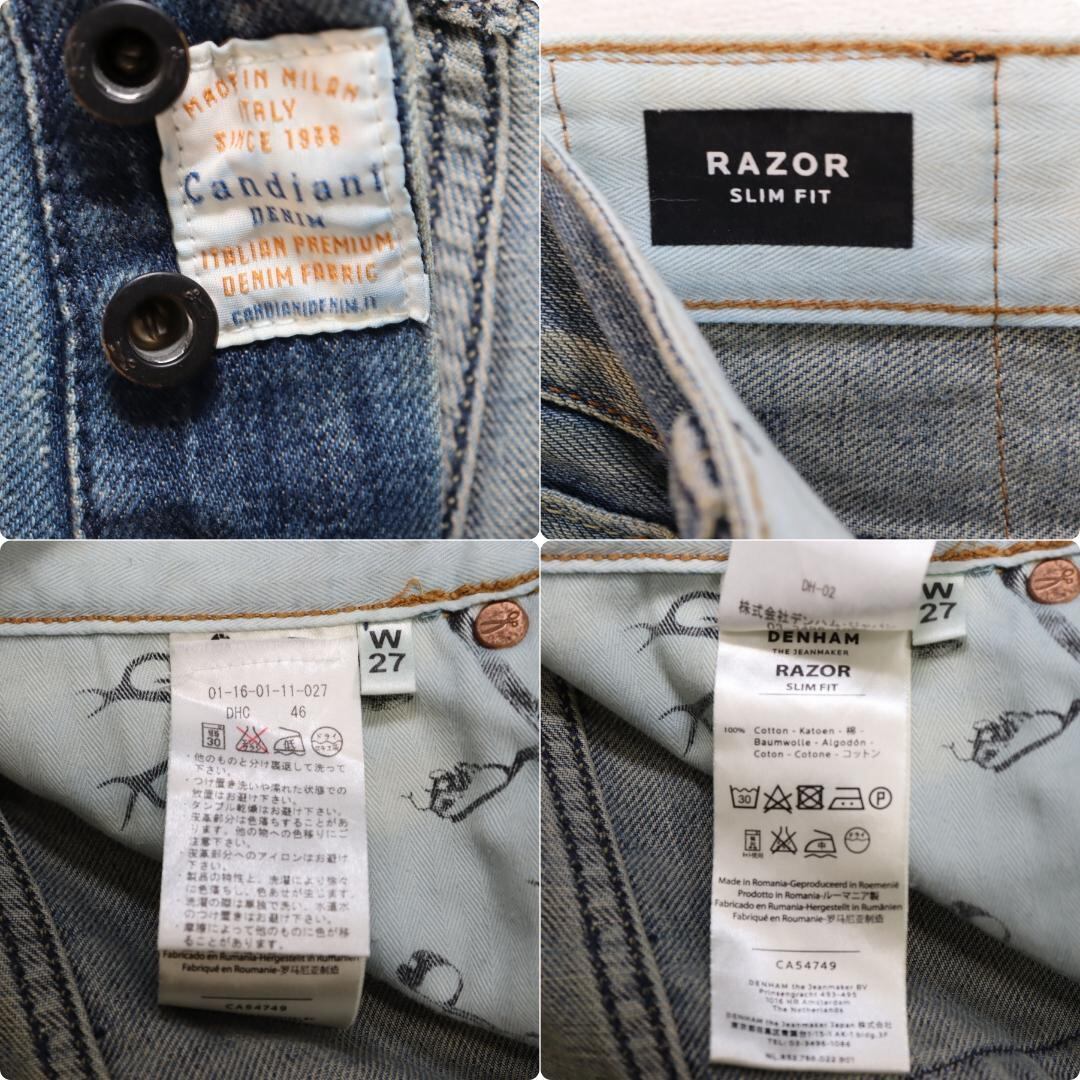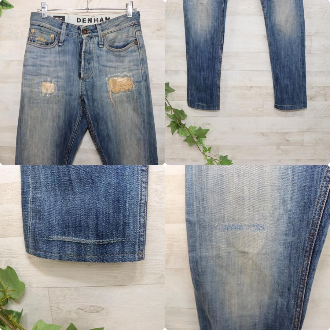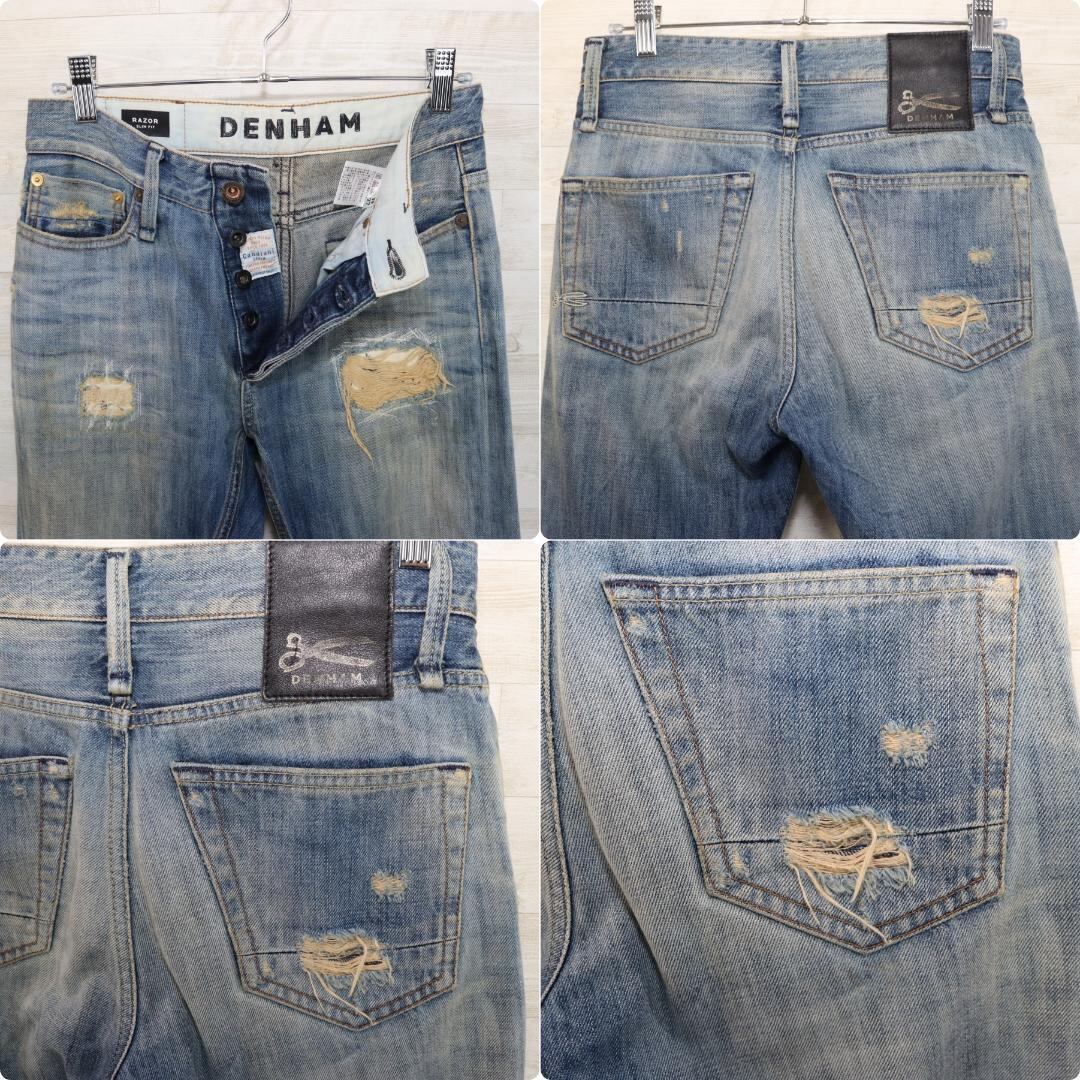 DENHAM デニムジーンズ 27 S アイスブルー色 ダメージ加工ストレート