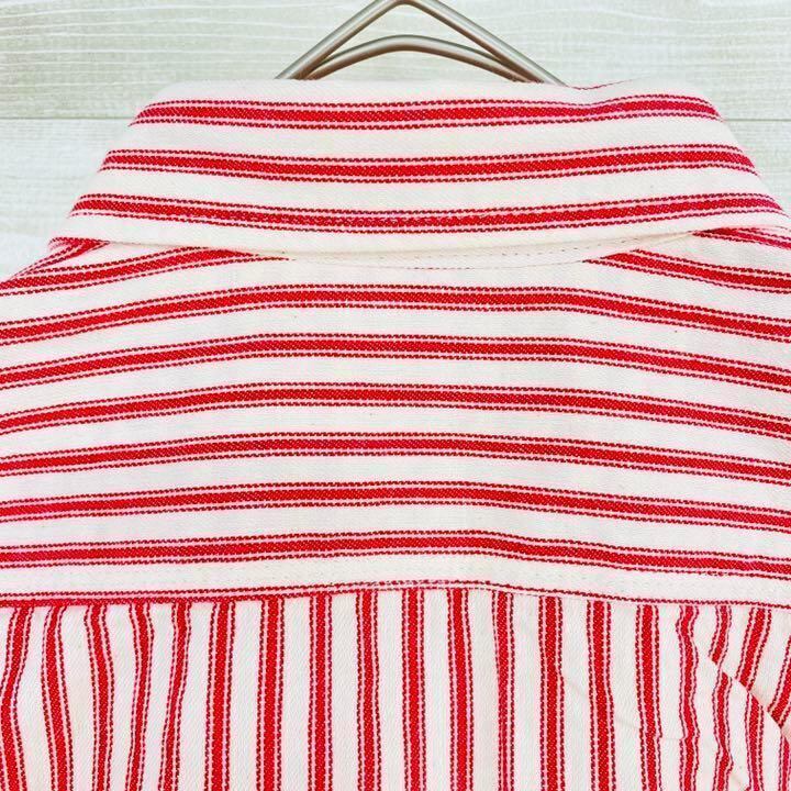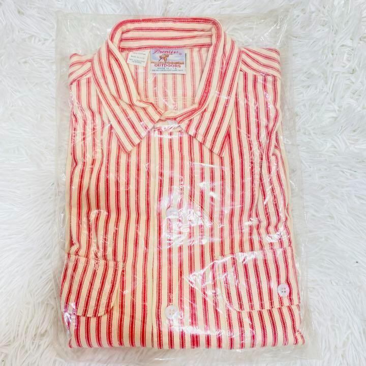 デッドストック Prentiss 80s ストライプダンガリーシャツ L 白×赤