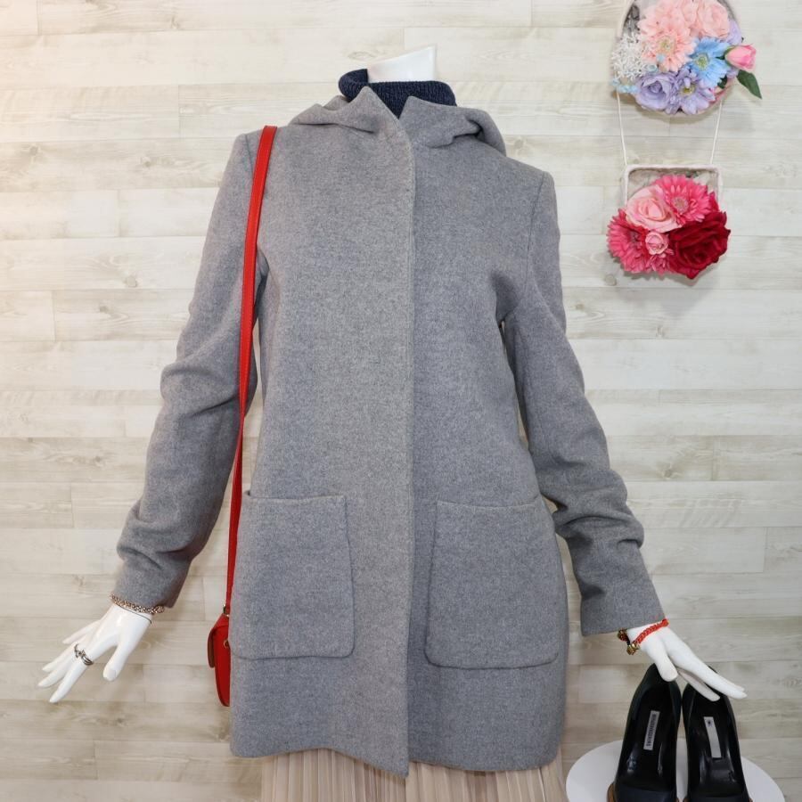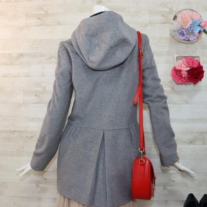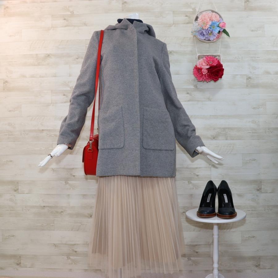 ヨーコチャン ミドル丈コート L グレー フード付き 隠しボタン アンゴラ混