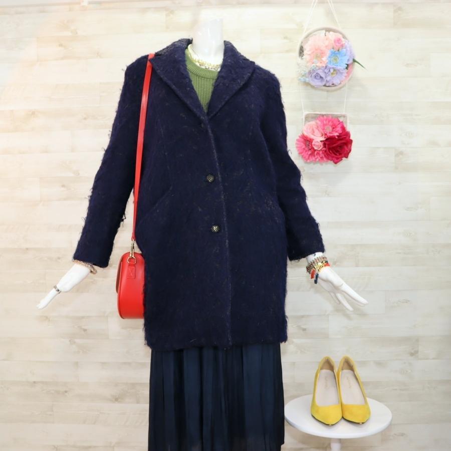 レキサミ バイカラーモヘア混コート S 紺色 ビジューボタン ほぼ未使用