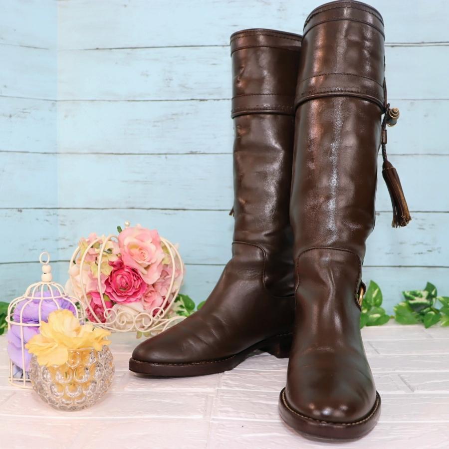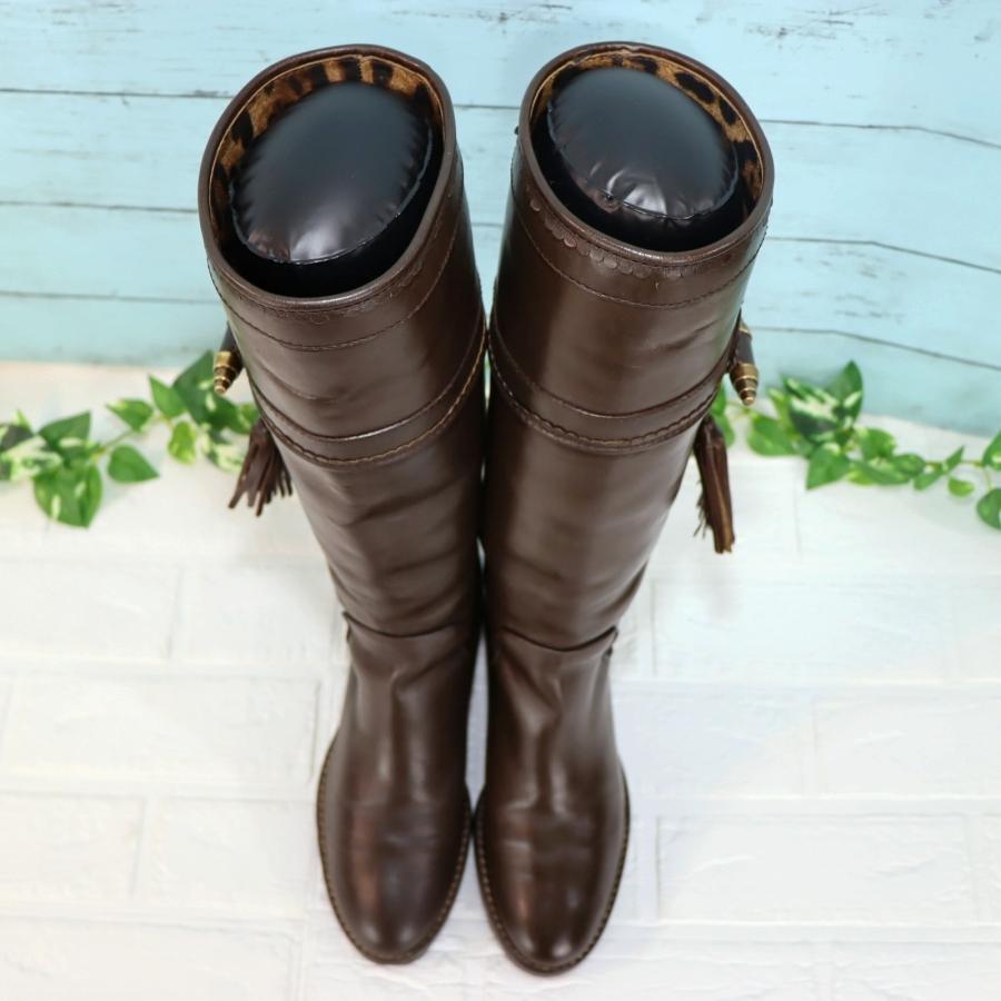 ドルチェ&ガッバーナ ロングブーツ 24cm 37 ダークブラウン フリンジ付