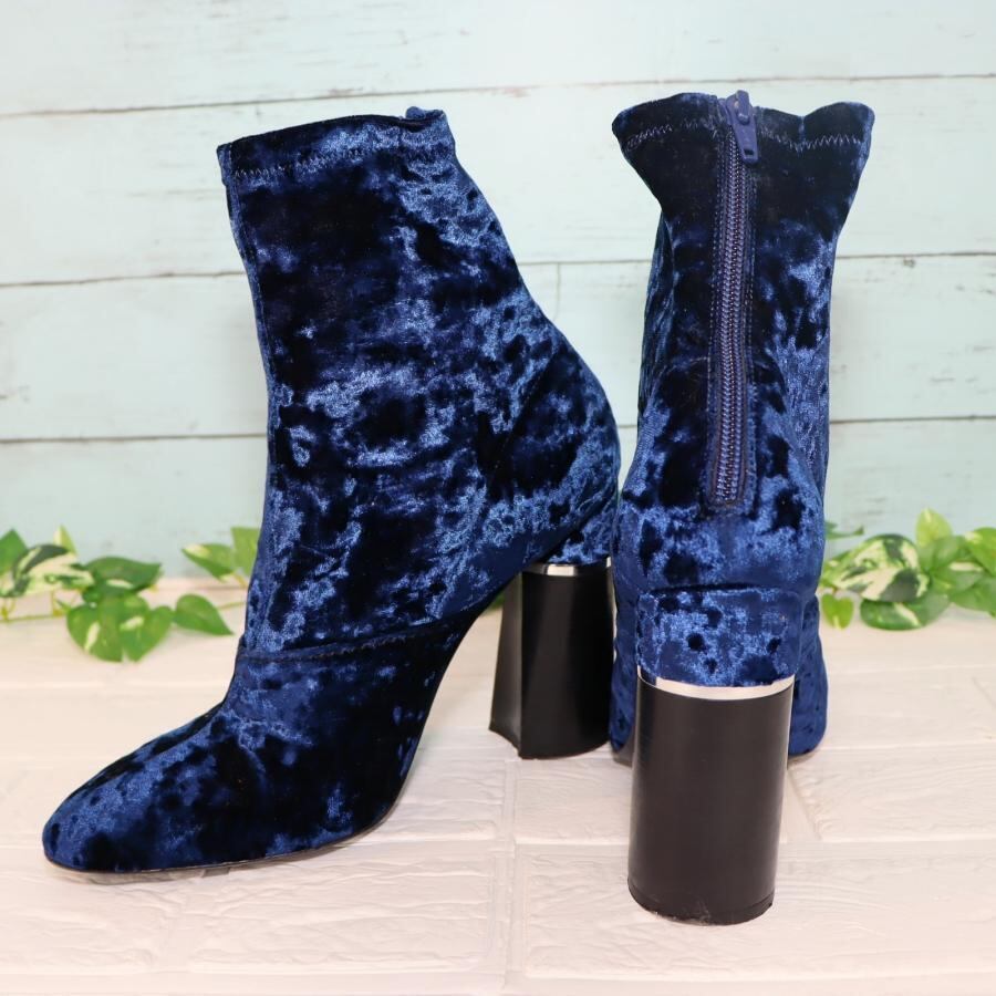 スリーワンフィリップリム ショート丈ブーツ 25.0㎝ 青 ベロア ほぼ未使用