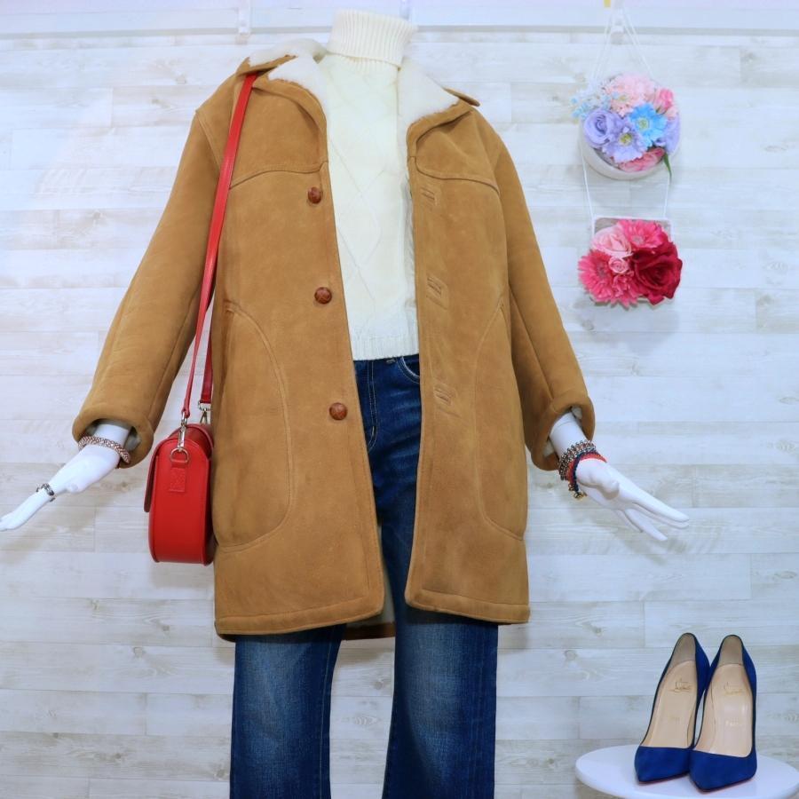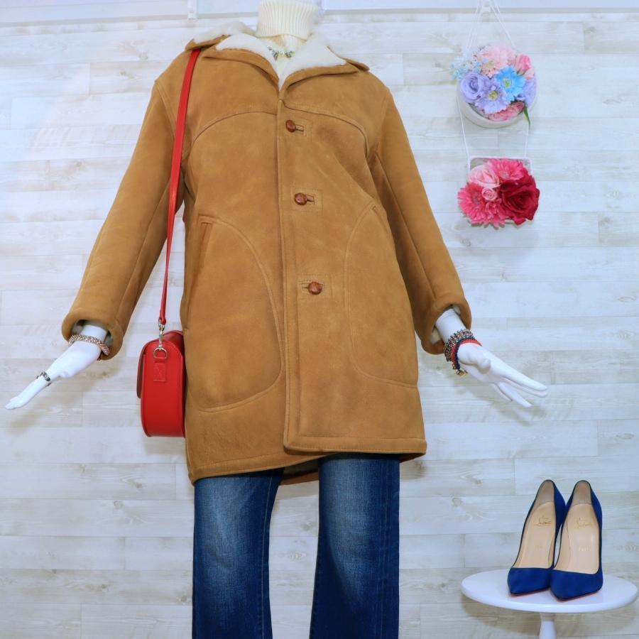 ゴールデンベア ムートンコート Mサイズ 茶色 ランチコート 内側ファー