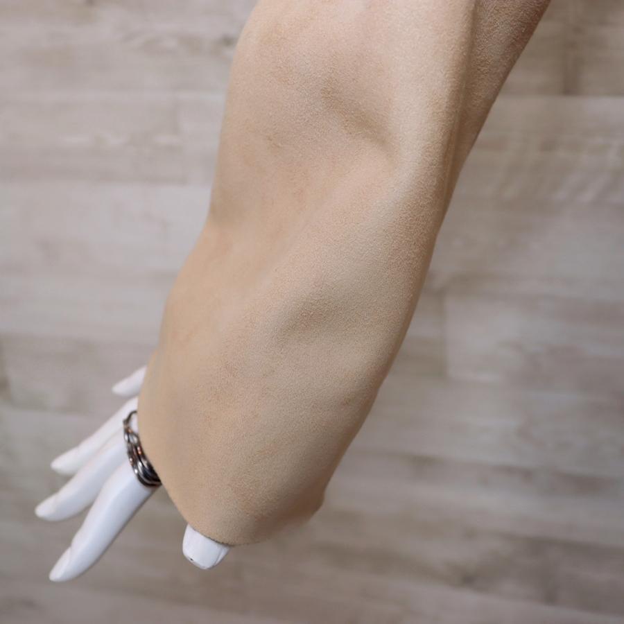 色はベージュで、サイズは記載なしなのですが、実測値から見てレディースのL相当です。