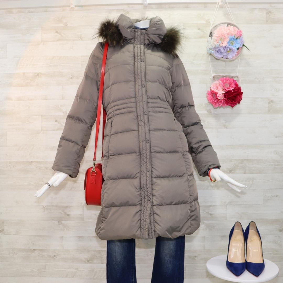 自由区 ベルト付ロングダウンコート M グレー たぬきファー ベルト付ほぼ未使用