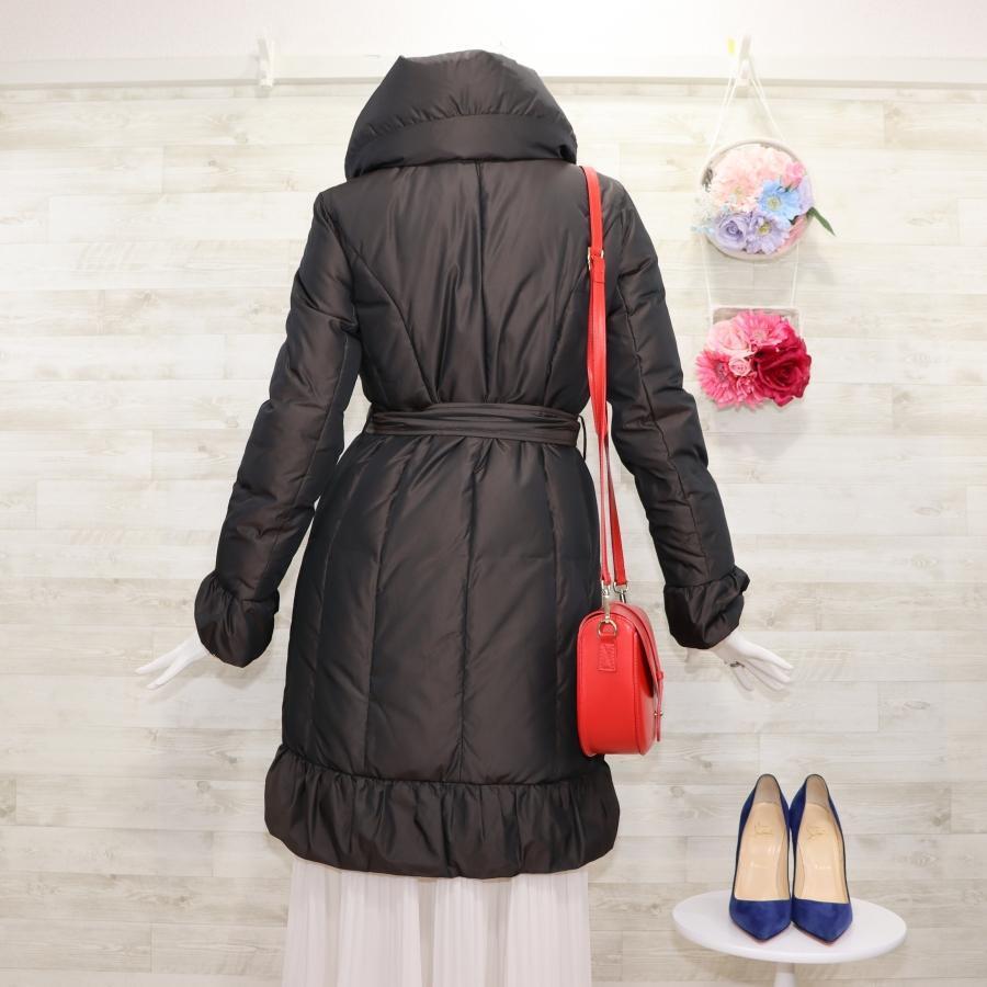エムプルミエブラック ロングダウンコート ウエストベルト付 M 茶色ほぼ未使用