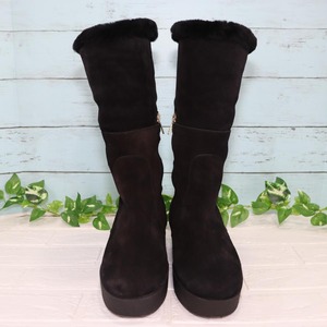 フェラガモ インソールムートンブーツ 24.0 黒 ロゴプレート ほぼ未使用