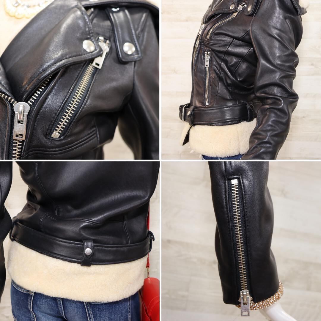 IRO イロ ムートンジャケット ボア S 黒×白 ライダーズ ほぼ未使用