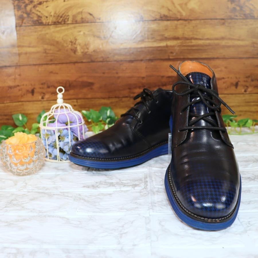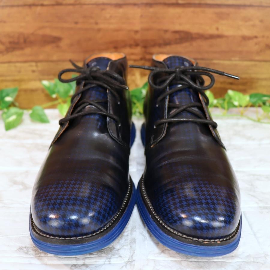 COLE HAAN ミドル丈レースアップブーツ 26.5 青 千鳥柄