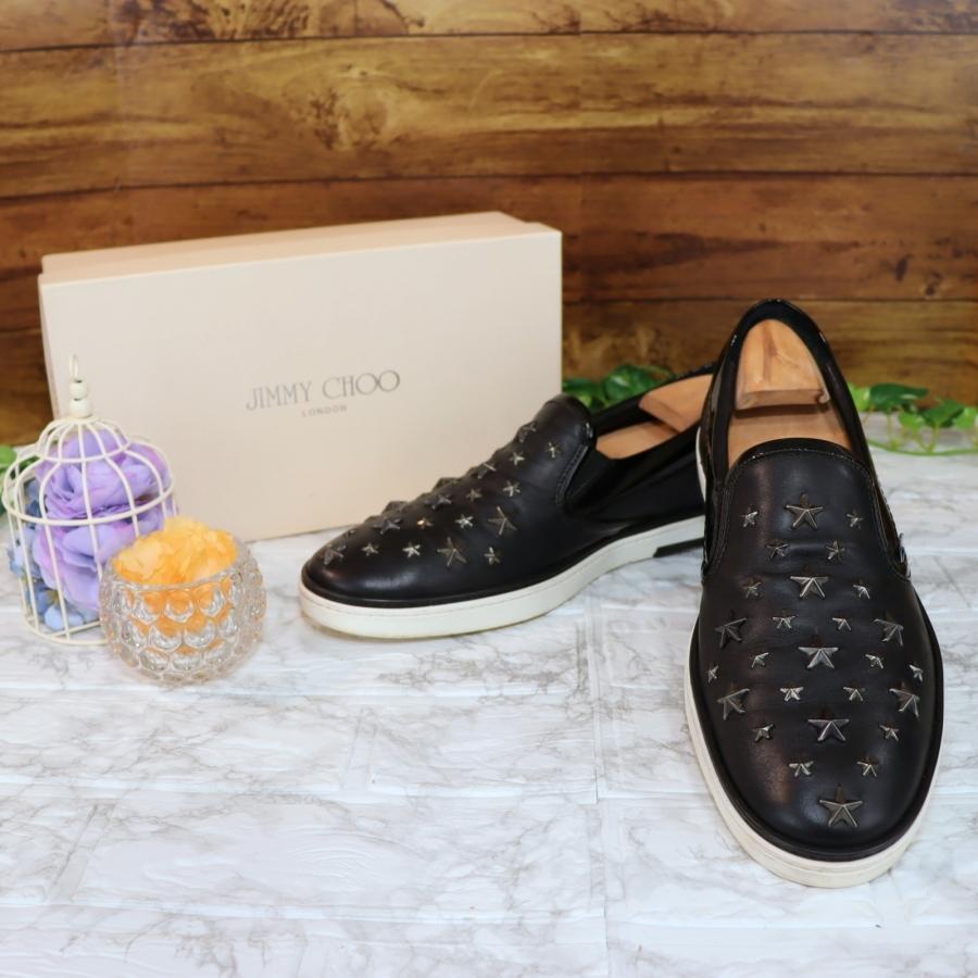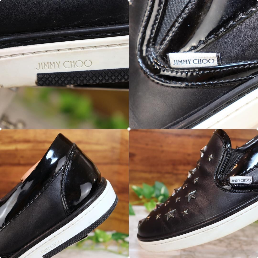 JIMMY CHOO レザースリッポン 黒 本革×スタースタッズ ほぼ未使用