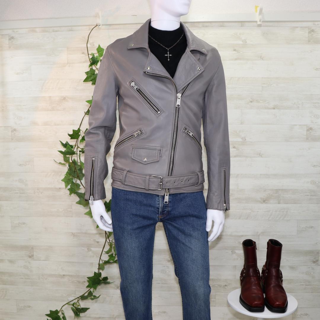 オールセインツ ダブルライダースジャケット L ブルーグレー ほぼ未使用
