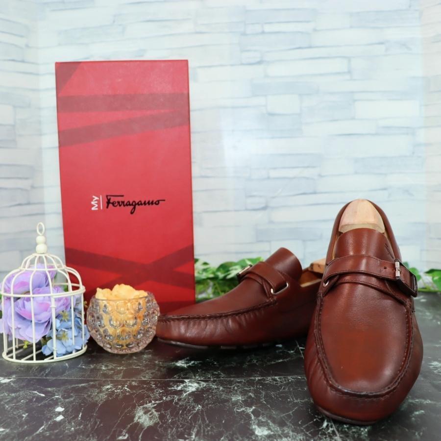 フェラガモ ドライビングシューズ 茶色 ビジネス靴 モンクストラップ 25.0位
