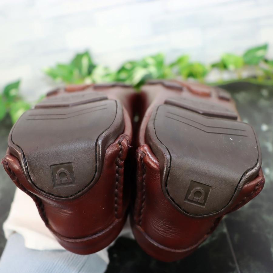 色はレッドブラウンっぽい色で、サイズはかすれていて読めないのですが、メンズの25.0cm相当、UK6.5位のサイズ感です。普段スニーカーの25.0〜25.5センチを履いてる方に丁度いいと思います。素材は牛革です。