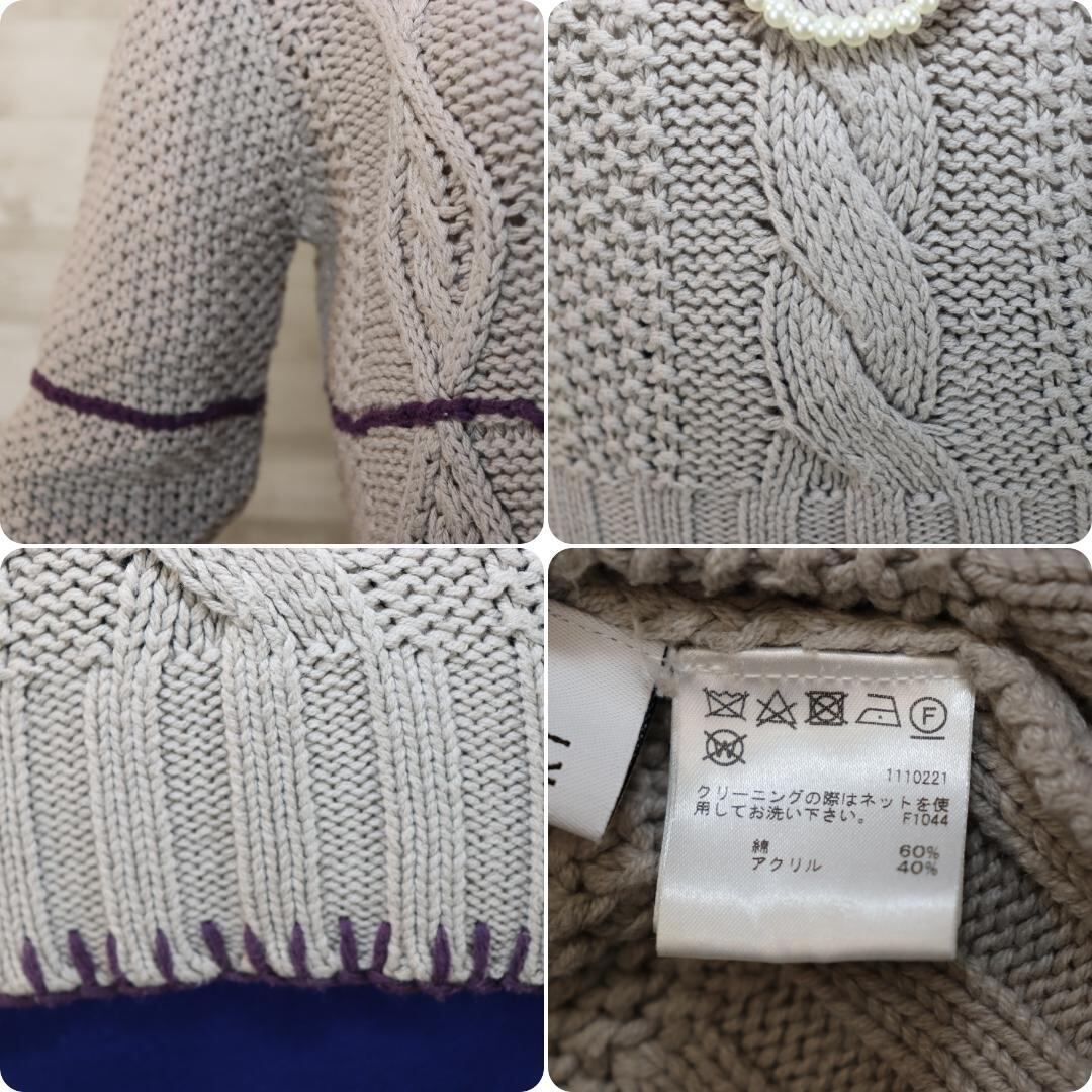 アメリ ニット Mサイズ 灰色×紫 オフネック フィッシャーマン柄 ほぼ未使用