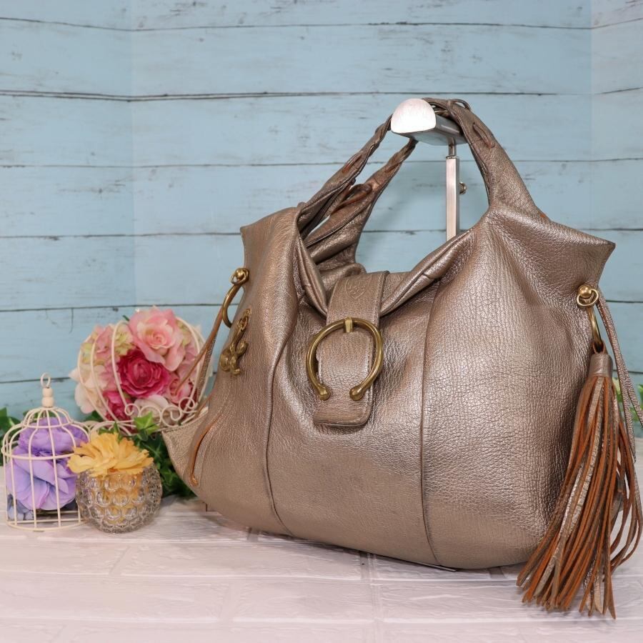 トフアンドロードストーン ハンドバッグ 金 フリンジ マグネットボタンほぼ未使用