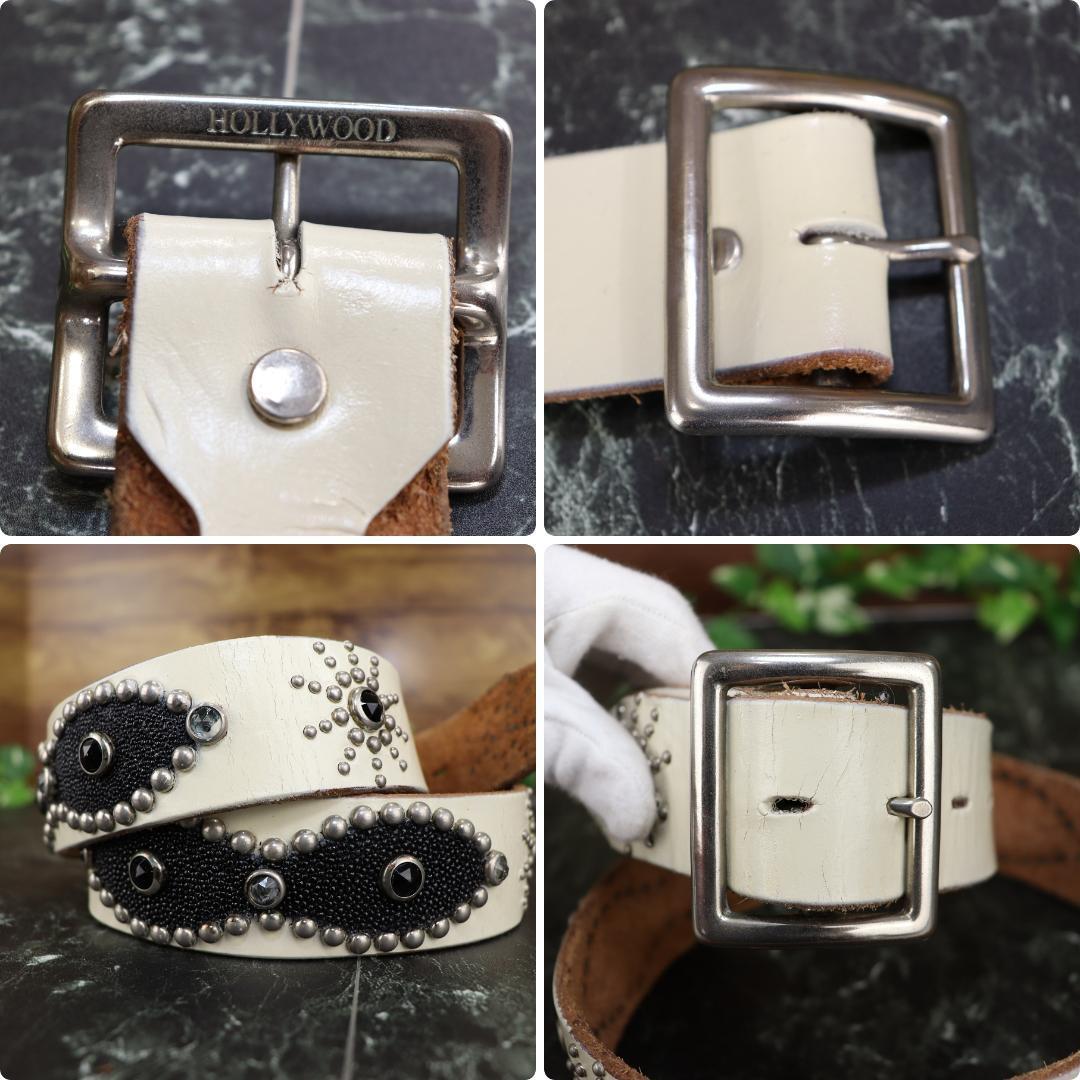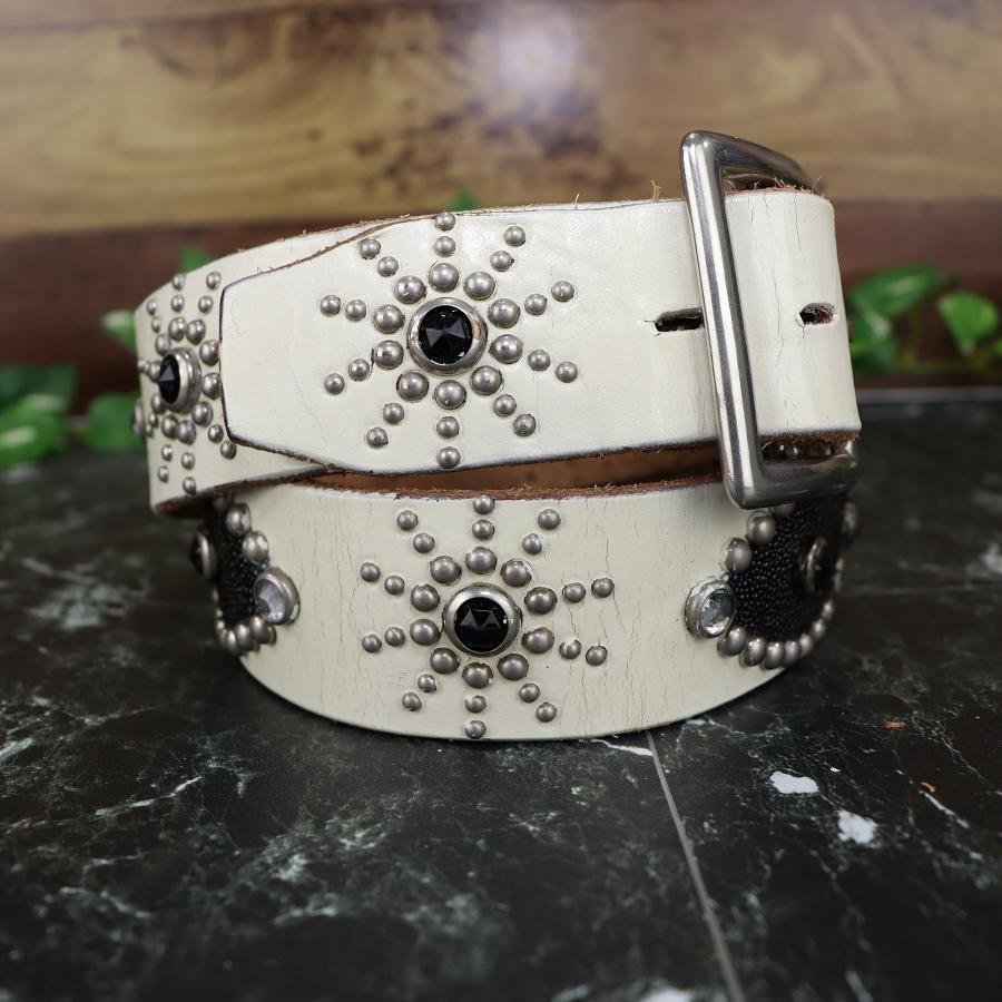 HTC ピーナッツスタッズベルト ホワイト×ブラック サイズ34 本革×エイ革